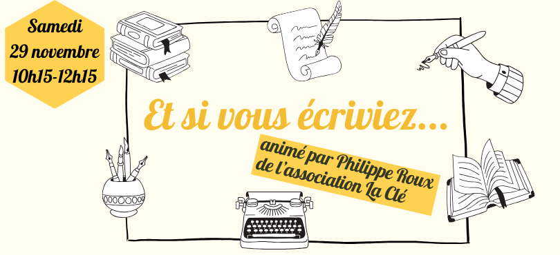 Vous l'attendiez tous et toutes avec impatience et le voici : le retour des ateliers d'écriture ! Retrouvez-nous donc pour le rendez-vous des écrivains en herbe (ou confirmés !), animé par Philippe Roux, de l'association La CLÉ.
