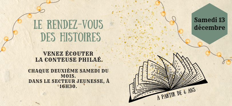 Venez écouter la conteuse Philaé, chaque deuxième samedi du mois.