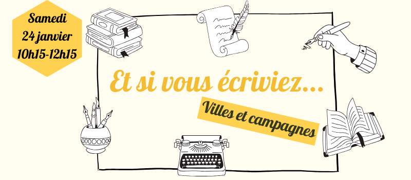 Entre villes et campagnes, cet atelier sera une invitation à se plonger au cœur de ces espaces de vie supposément opposés, où l’écriture permettra de laisser libre cours aux imaginaires ou aux souvenirs qui entourent ces lieux.