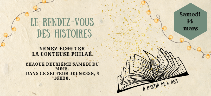 Venez écouter la conteuse Philaé, chaque deuxième samedi du mois.