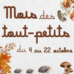 Du 4 au 22 octobre 2025, c'est le Mois des tout-petits ! Les spectacles sont complets , il reste de la place pour les séances Bébés signes ! Les enfants de 0 à 5 ans sont à l'honneur pendant ce mois...